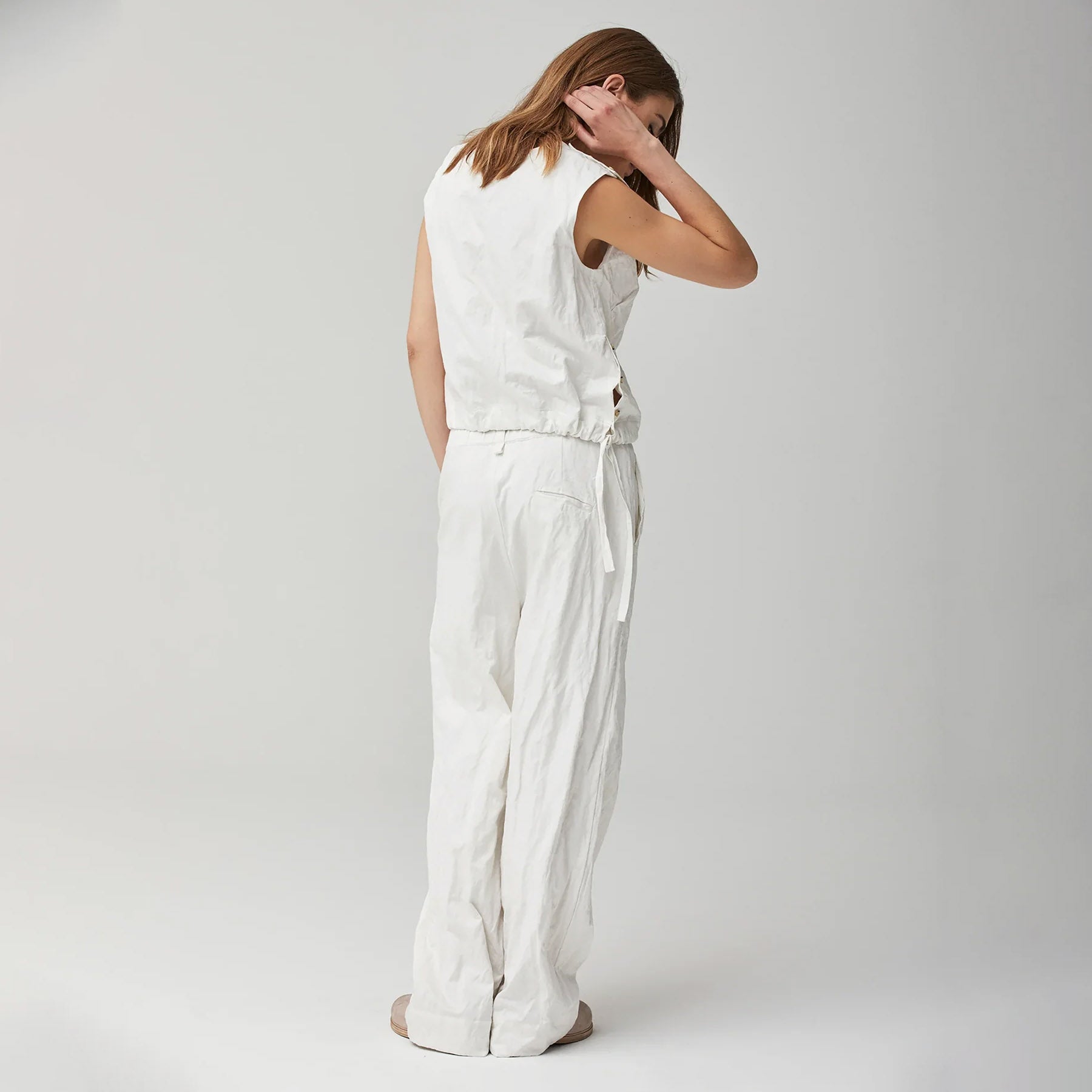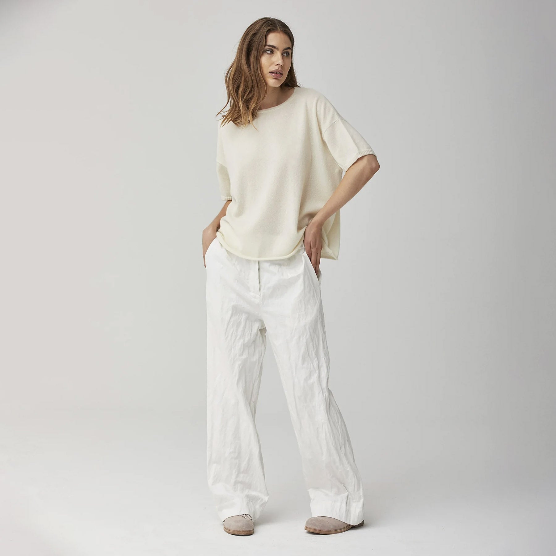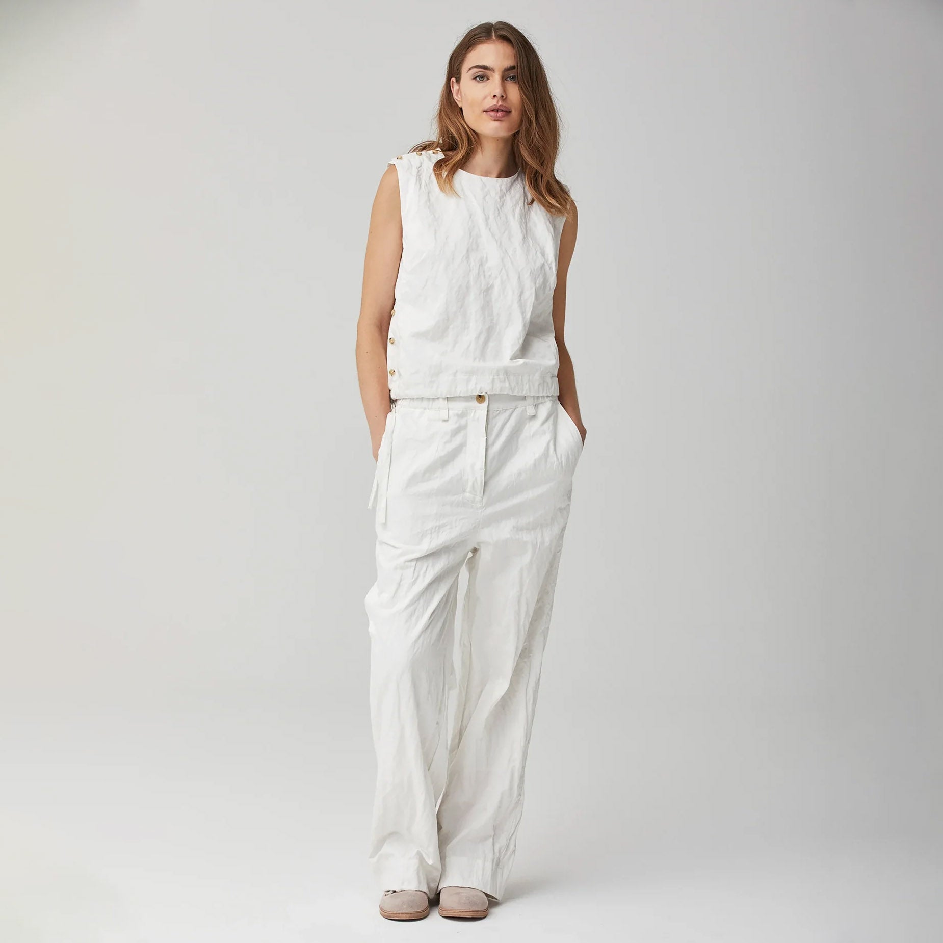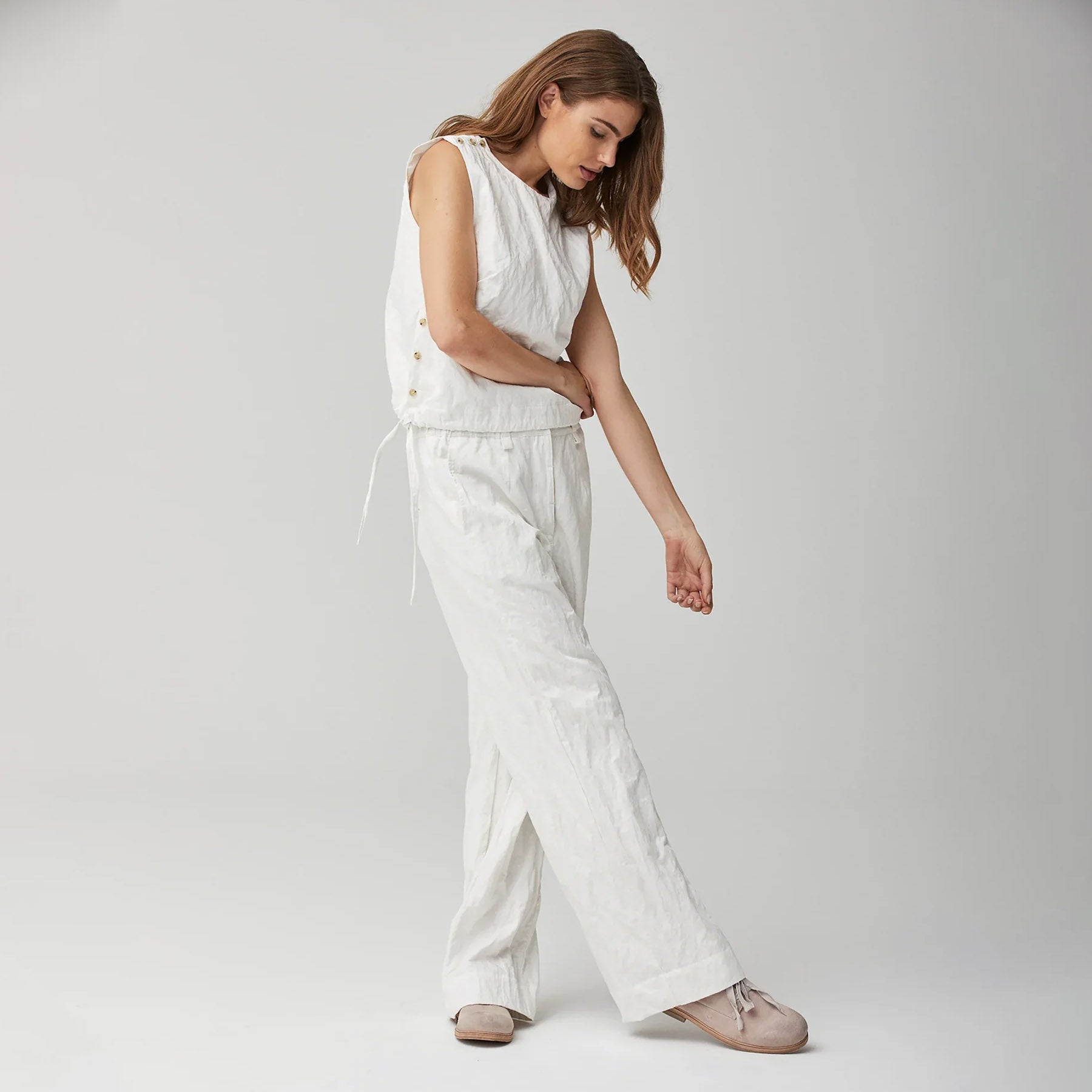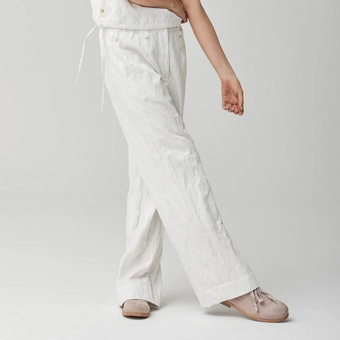 Casual chic cotton crinkled pants for your summer wardrobe.